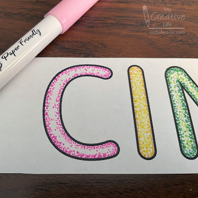 Then move on to the next letter. Obviously, you can use the same three markers or choose another set of three. I like the variety, so I did a modified rainbow.